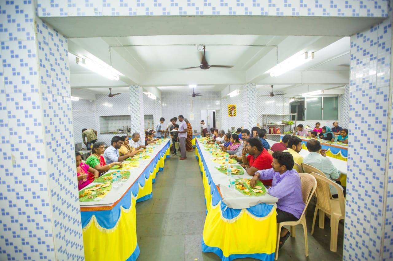 Airconditioned hall for holding functions and a dining hall, spread over ground and first floor. Has a small elevator. There is seating available in the 2nd floor in a balcony setting. Situated right in the heart of bustling West Mambalam and close to a range of shops selling anything from sarees, dresses, jewellery, to electronic items and kitchenware.